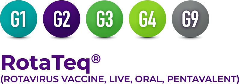 RotaTeq is indicated for the prevention of rotavirus gastroenteritis in infants and children caused by Types G1, G2, G3, G4, and G9 when administered as a 3-dose series to infants between the ages of 6 to 32 weeks. The first dose of RotaTeq should be administered between 6 and 12 weeks of age.